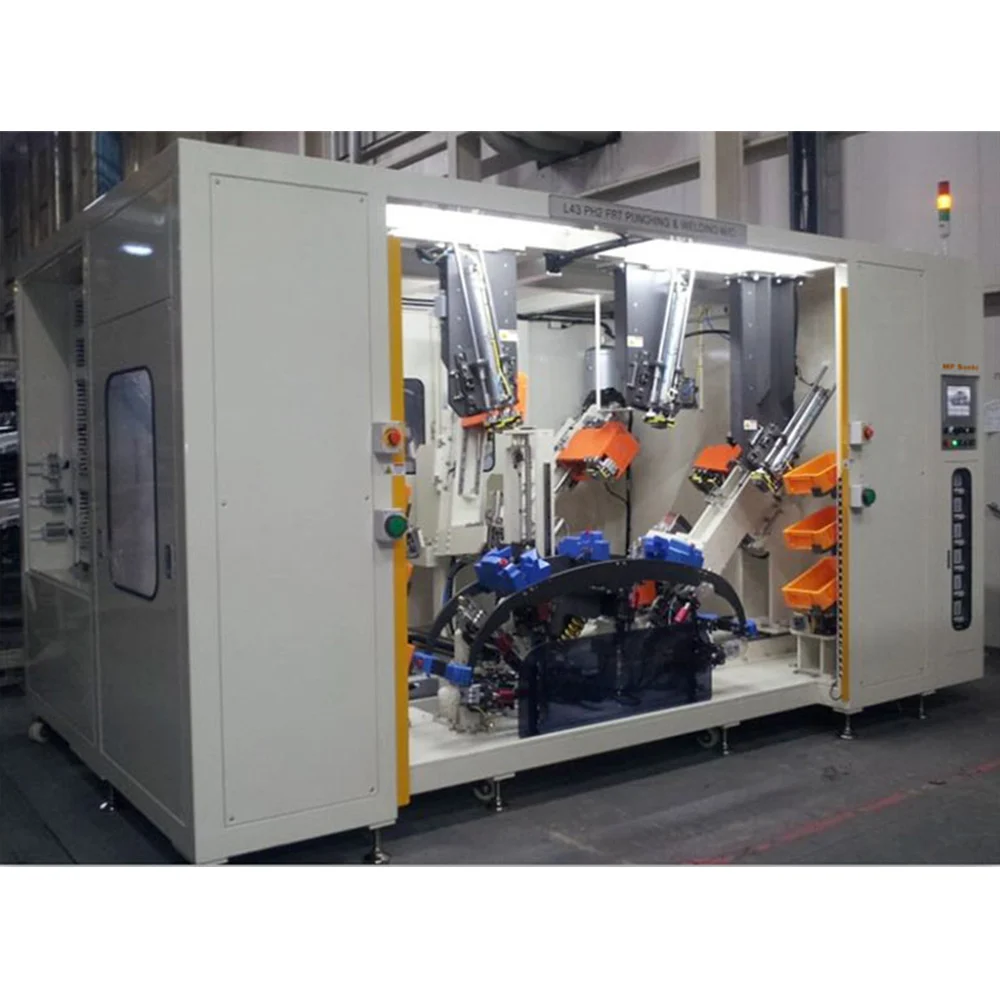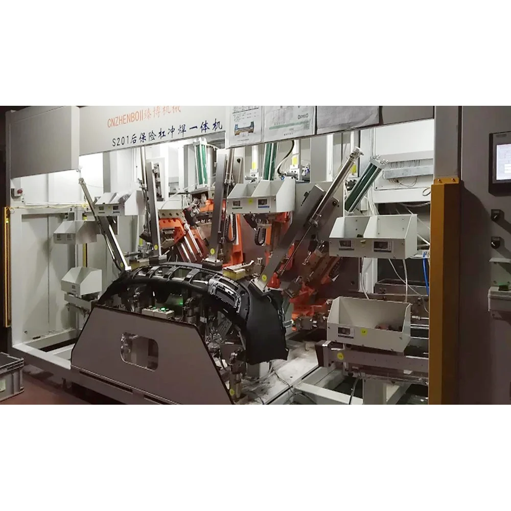 保险杠冲焊一体机是用于汽车保险杠组装生产的设备,适用于雷达、雾灯等的冲孔及雷达、雾灯等支架的焊接。