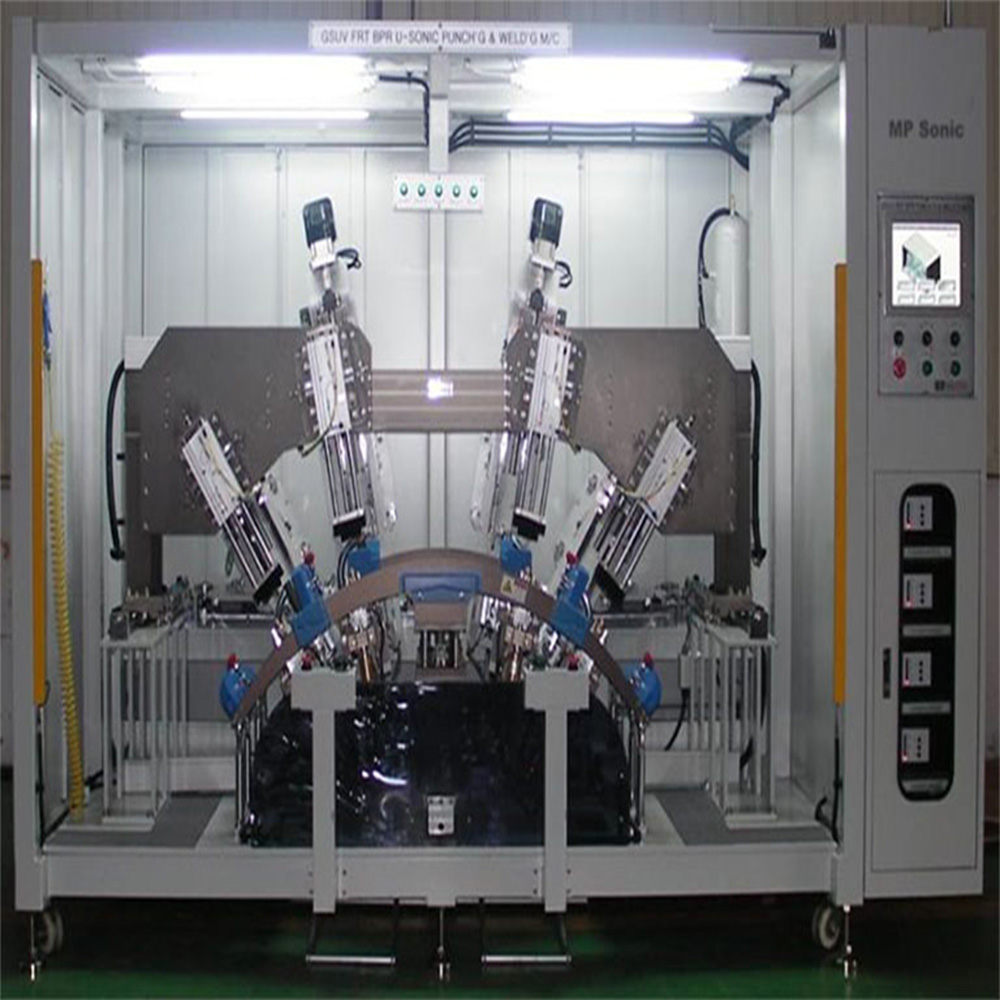 FASCIA punching & welding machine normally should be specially designed basing on requirement of each projects. Depends on the requirement, material of bumper and assembly process, the punching can be finished by hard-mechanical tooling or ultrasonic tooling, and the welding normally should be finished by ultrasonic. The forcing of punching normally can be servo motor controlled or booster-cylinders, while the ultrasonic welding normally forced by pneumatic cylinder systems.