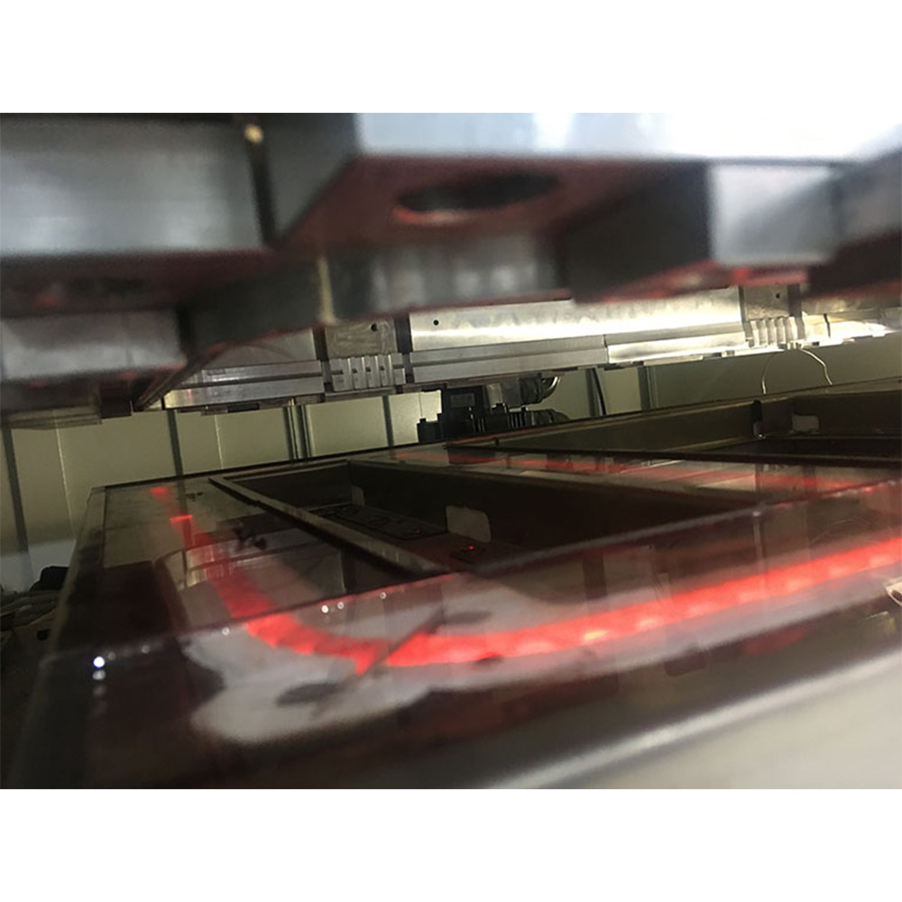 MP Sonic infrared welder applies higher power driver type IR control system specially designed by MP Sonic to control heating temperature , which can be applied for hot platen welding also. Machine applies servo motors systems to control toolings motion and force clamp pressure to welded parts during operation in fast and accurate action. Linear ways are applied for tooling moving guide. The jig bed for upper fixture and lower fixture is made by cast-steel plate in anti-deformation design, ensuring machine stability in long duration. Orbital mechanical system is designed on base jig bed for easy parts loading and unloading.